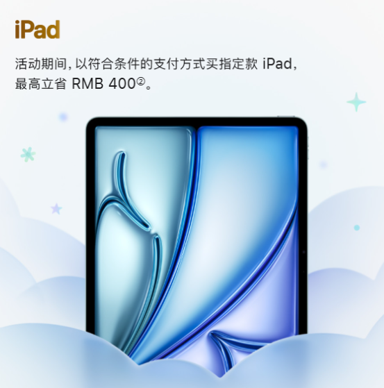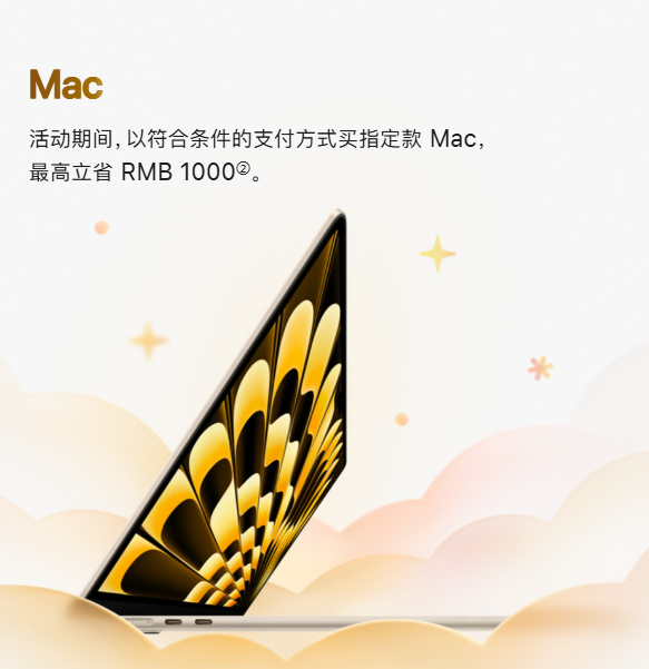 近几年苹果都会在农历新年推出对应的新春限时优惠活动,以符合条件的支付方式买指定产品,最高立省1000元,还可享最高24期免息分期。