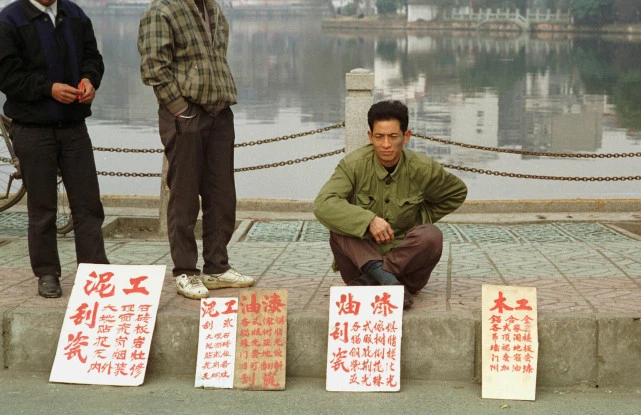 1998年,一位下岗工人在南昌路边等生意 来源:视觉中国